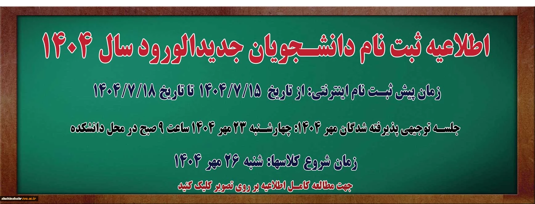 اطلاعیه ثبت نام دانشجویان نو ورود 1404 2